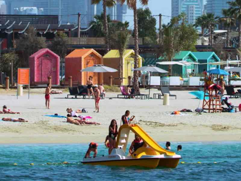 Stylish waterfront development with restaurants, stores, beach activities, a cinema & a water park. Rent a cabana with views of the Arabian Gulf, sun yourself on our comfortable daybeds while your little ones build a sand castle, take a cooling dip in the sea, or try your hand at paddle boarding, surfing or a range of other water sports.